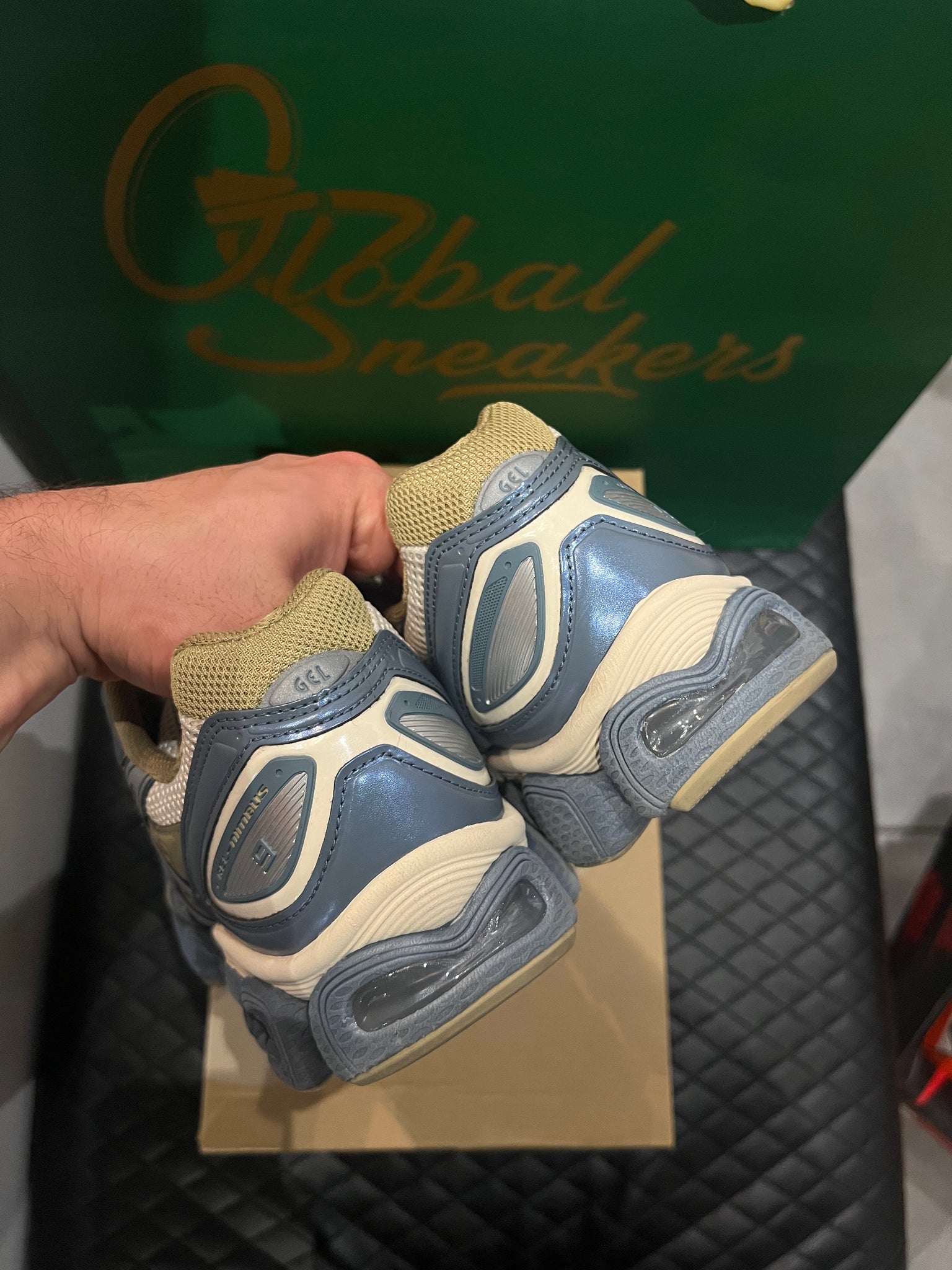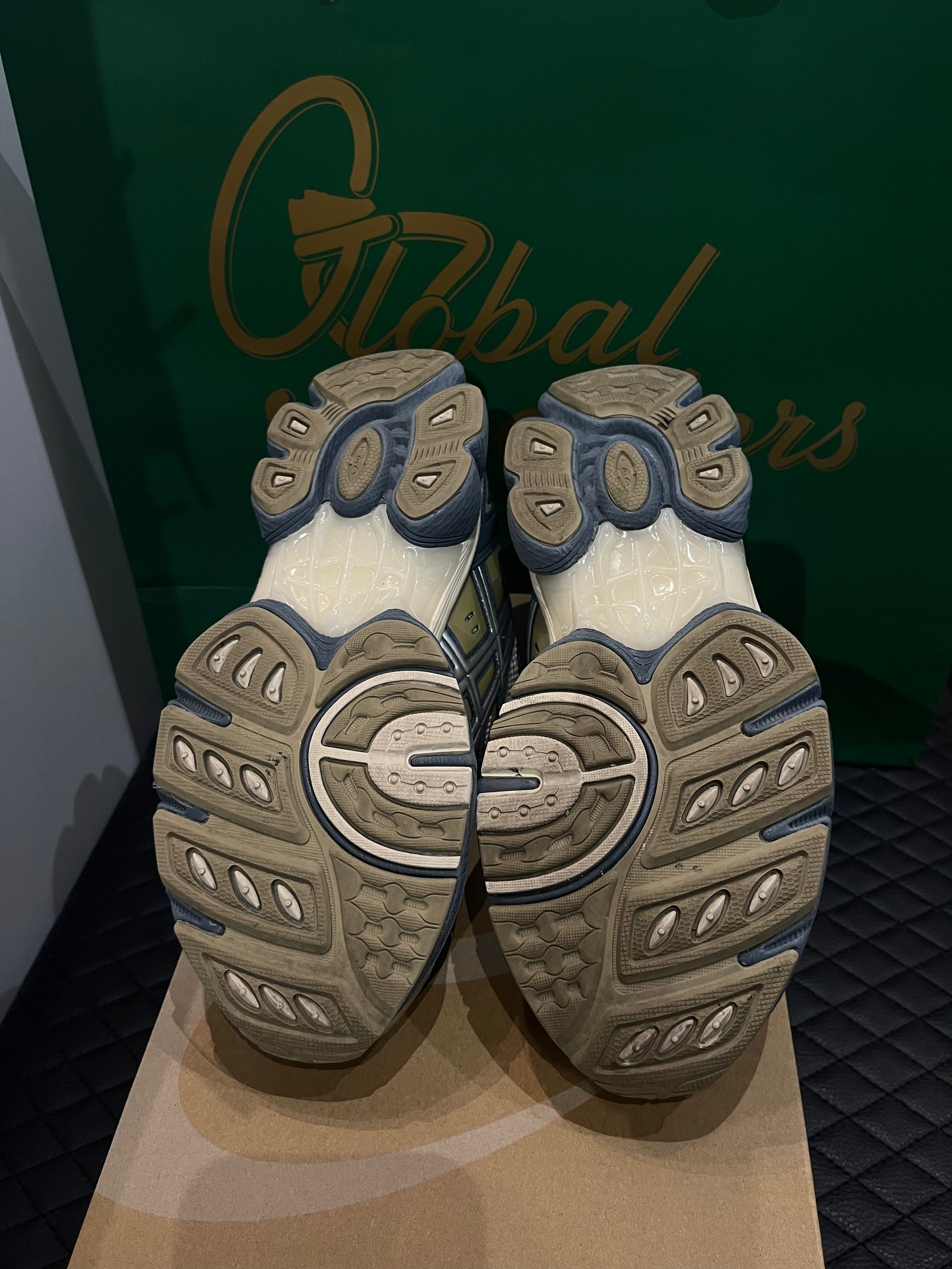 Cette ASICS Gel-Nimbus 9 en coloris Oatmeal / Ironclad, présentée en état 8,5/10, met en lumière l’harmonie parfaite entre performance technique et esthétique rétro-running. La silhouette associe un mesh respirant à des superpositions en matériaux synthétiques texturés, créant un jeu de relief dynamique qui renforce la personnalité robuste du modèle.
