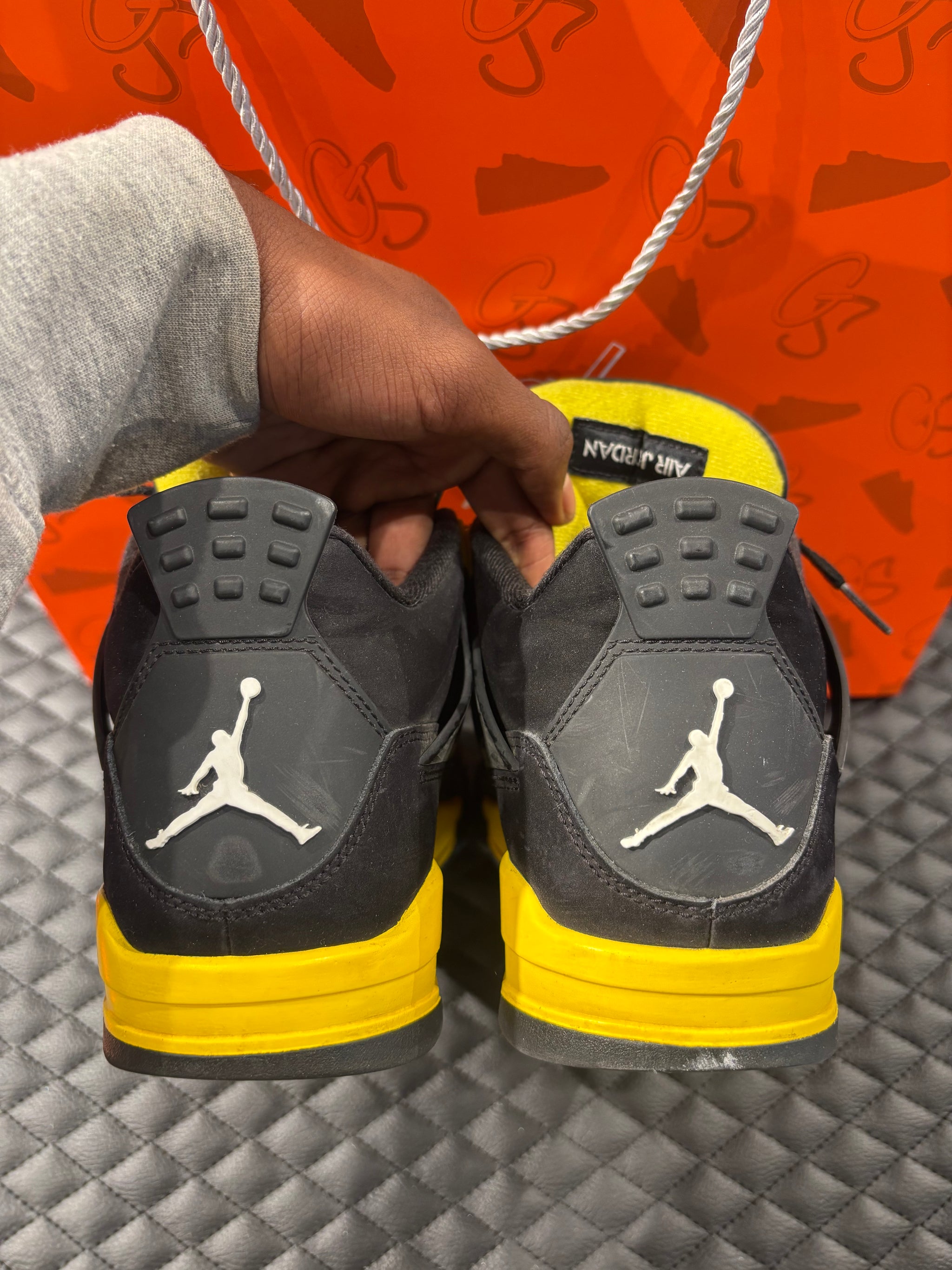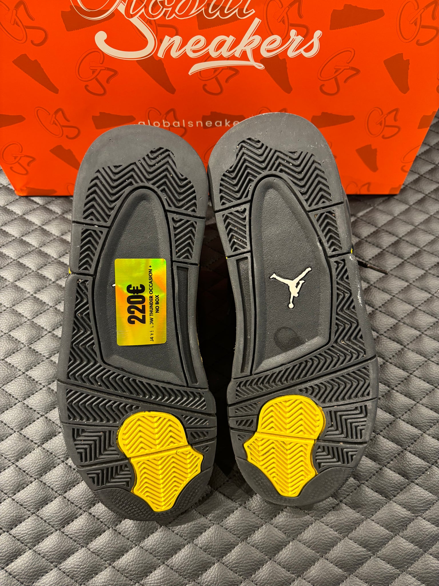 Cette Jordan 4 Rétro Thunder, affichée en état 8,5/10, affirme toute la puissance visuelle de son coloris noir et jaune éclatant qui a marqué la culture sneaker. La silhouette mêle un suede premium profond à des touches contrastées d’un jaune vibrant qui soulignent les éléments emblématiques du modèle, offrant une présence forte et électrique. L’usure reste légère et maîtrisée, la forme demeure intacte, la semelle est propre, et seules quelques marques subtiles rappellent une utilisation soignée. Sans boîte mais authentifiée et préparée avec précision, cette Thunder conserve l’allure dynamique et l’intensité graphique qui ont fait de cette version l’une des plus reconnaissables et recherchées de la gamme, entre héritage basketball et esthétique urbaine affirmée.