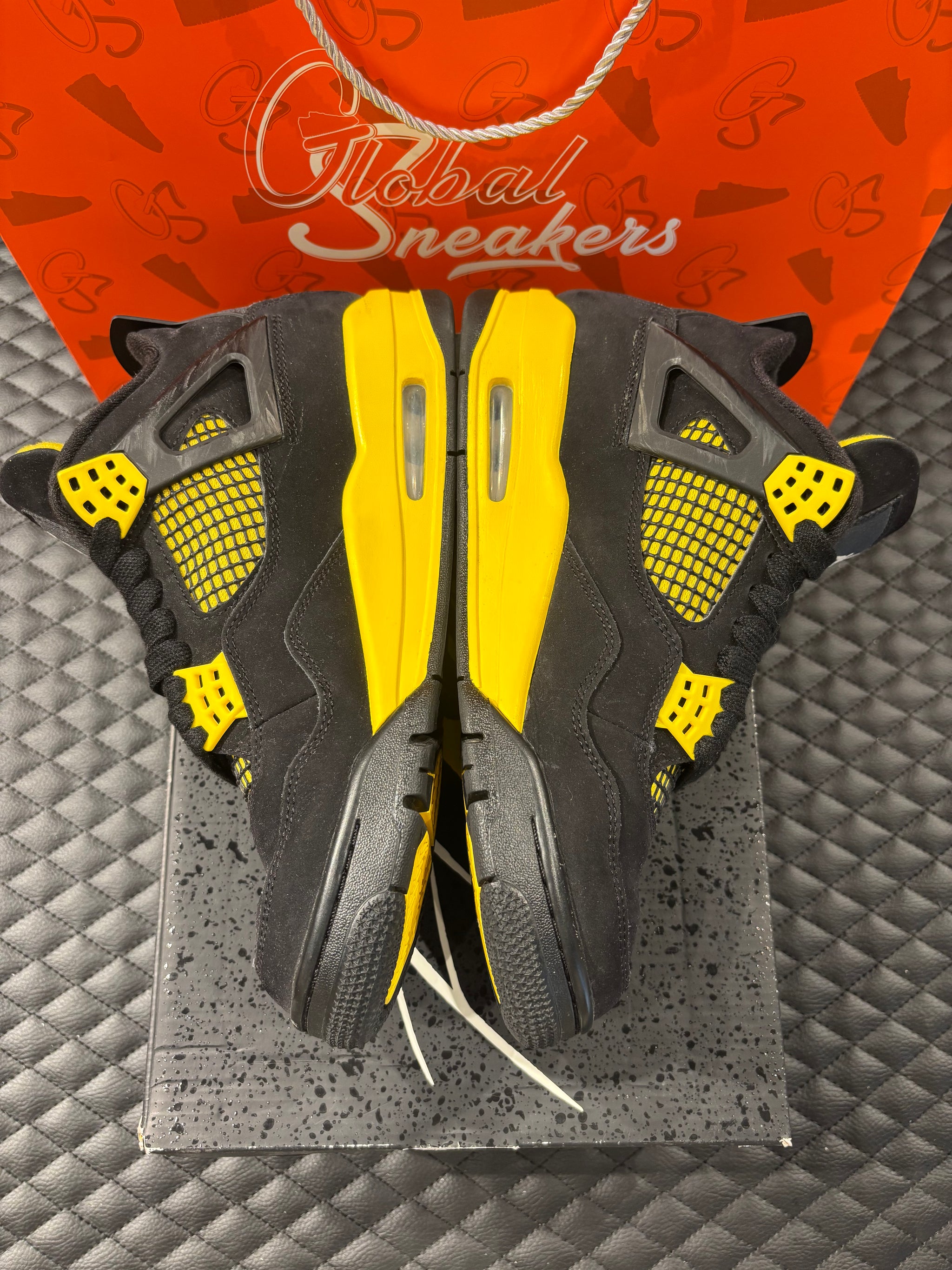 Cette Jordan 4 Rétro Thunder, affichée en état 8,5/10, affirme toute la puissance visuelle de son coloris noir et jaune éclatant qui a marqué la culture sneaker. La silhouette mêle un suede premium profond à des touches contrastées d’un jaune vibrant qui soulignent les éléments emblématiques du modèle, offrant une présence forte et électrique. L’usure reste légère et maîtrisée, la forme demeure intacte, la semelle est propre, et seules quelques marques subtiles rappellent une utilisation soignée. Sans boîte mais authentifiée et préparée avec précision, cette Thunder conserve l’allure dynamique et l’intensité graphique qui ont fait de cette version l’une des plus reconnaissables et recherchées de la gamme, entre héritage basketball et esthétique urbaine affirmée.