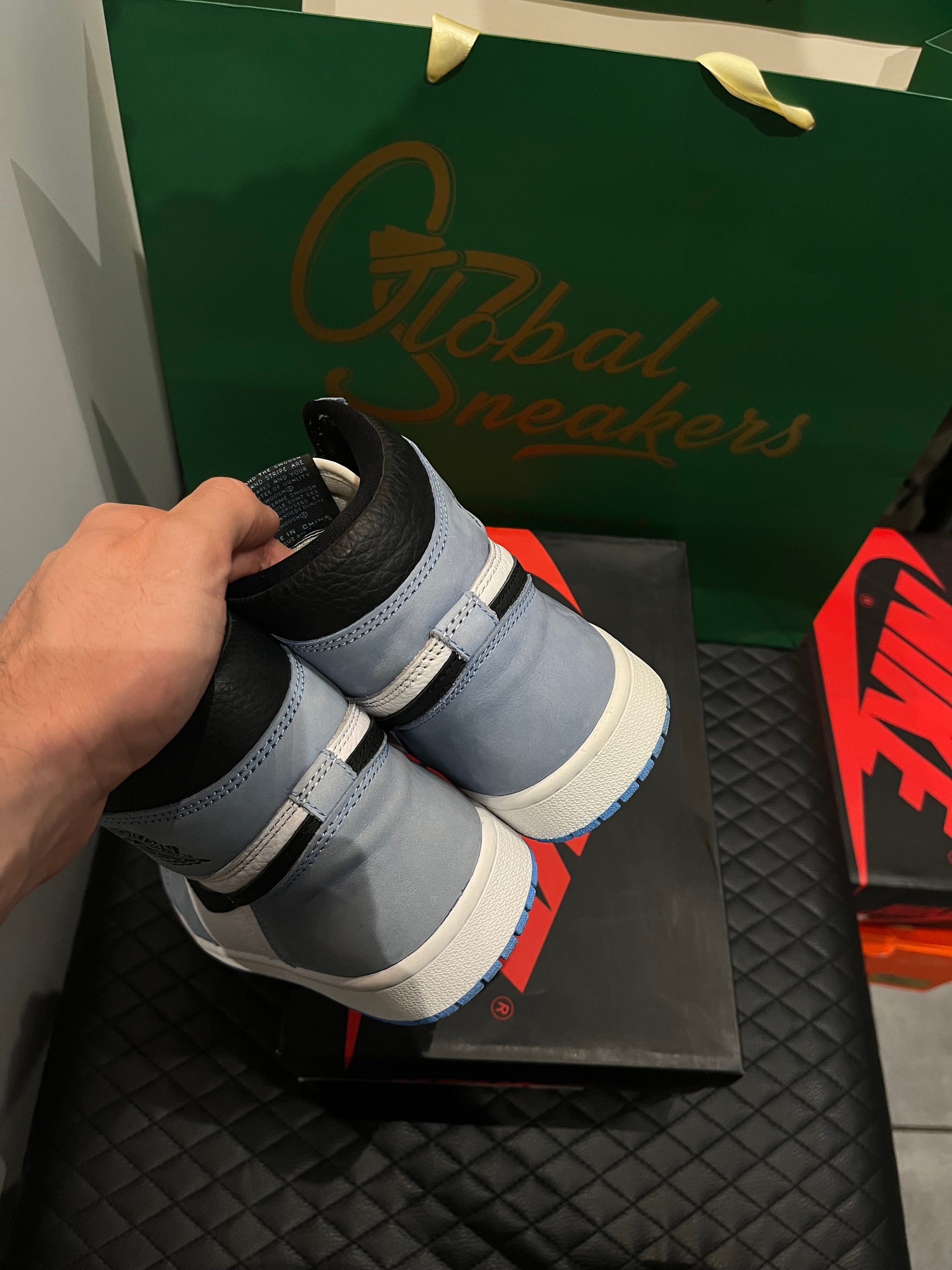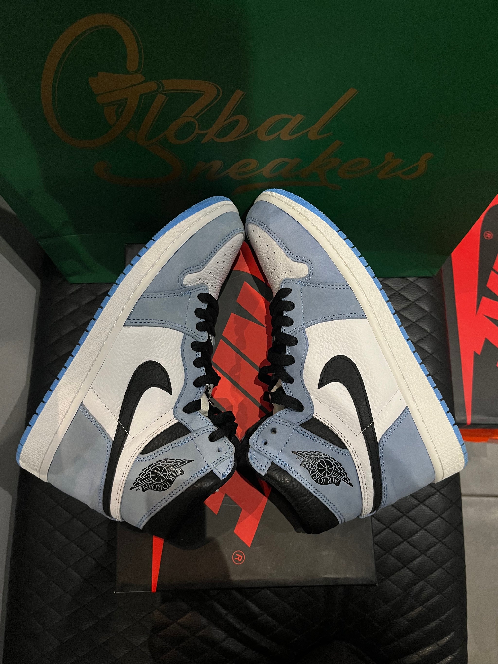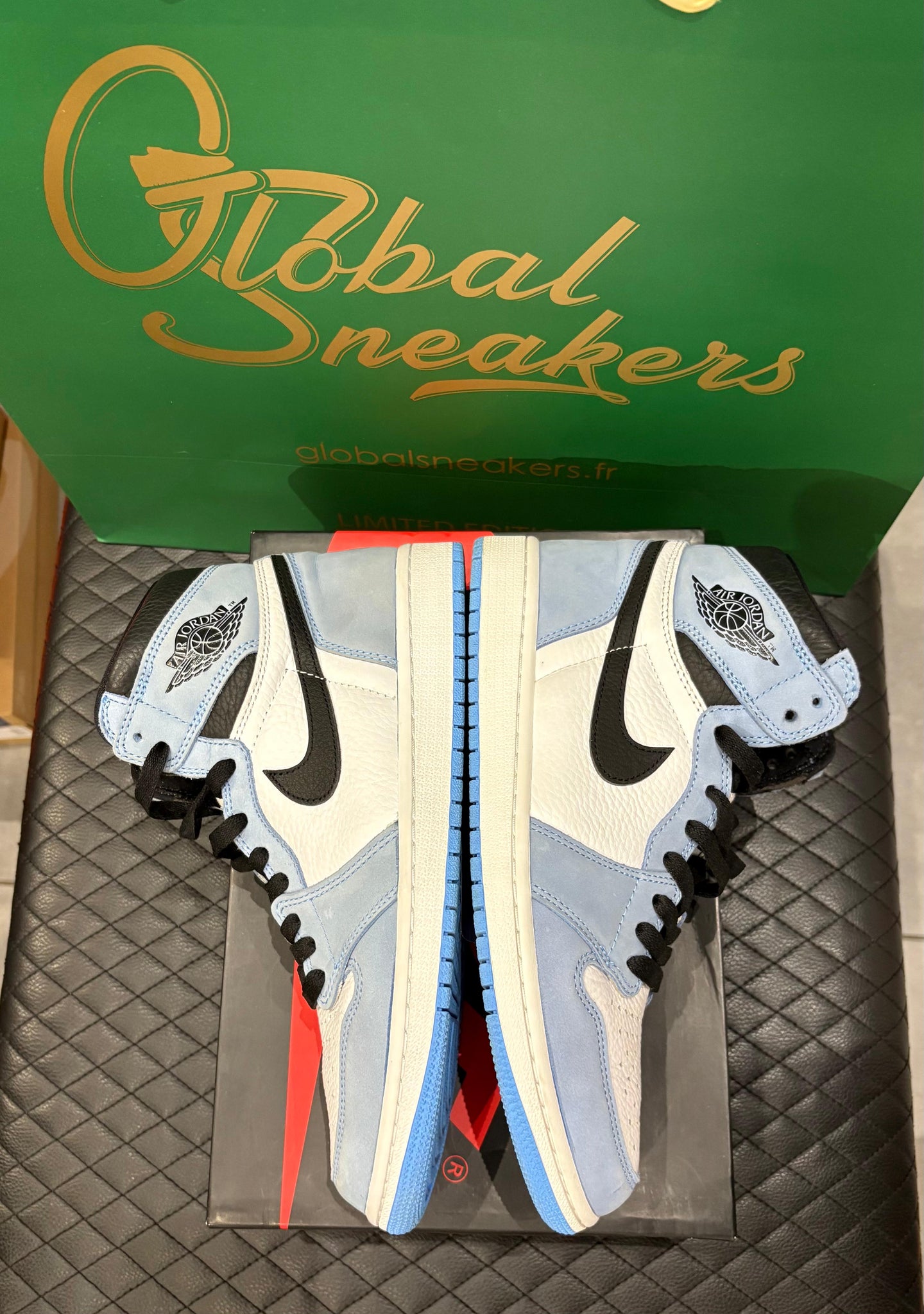 Cette Jordan 1 Retro High OG University Blue, affichée en état 8,5/10, met en avant l’un des coloris les plus emblématiques de la lignée Jordan, inspiré des teintes historiques de l’université de Caroline du Nord. Le cuir blanc premium s’associe à un suede bleu ciel d’une grande finesse, créant un contraste frais et lumineux qui magnifie la silhouette légendaire de la Jordan 1. Les matériaux conservent toute leur texture, la forme demeure parfaitement préservée, la semelle est propre, et seules de légères marques d’usage rappellent un port maîtrisé. Authentifiée et livrée avec sa boîte d’origine, cette University Blue réunit élégance sportive, héritage basketball et aura lifestyle, offrant une pièce recherchée au style affirmé et intemporel.