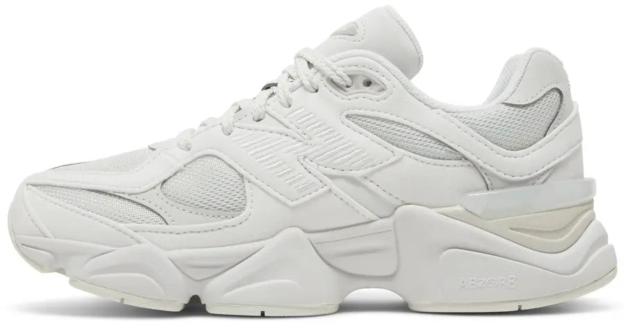 La New Balance 9060 Reflection apporte une interprétation lumineuse et résolument moderne de la silhouette sculpturale 90/60. Sa tige associe un mesh blanc éclatant à des empiècements en suède gris perle et à des détails synthétiques argentés qui accentuent l’inspiration futuriste du modèle. L’ensemble crée un rendu aérien, presque miroir, qui fait écho au nom Reflection tout en soulignant les lignes architecturales de la sneaker. La semelle oversize intègre les technologies ABZORB et SBS, assurant un amorti exceptionnel et une stabilité optimale, tandis que la construction généreusement rembourrée offre un confort durable. Élégante, moderne et polyvalente, cette version Reflection se prête aussi bien aux looks minimalistes qu’aux tenues plus affirmées, ajoutant une touche premium et contemporaine à chaque pas.