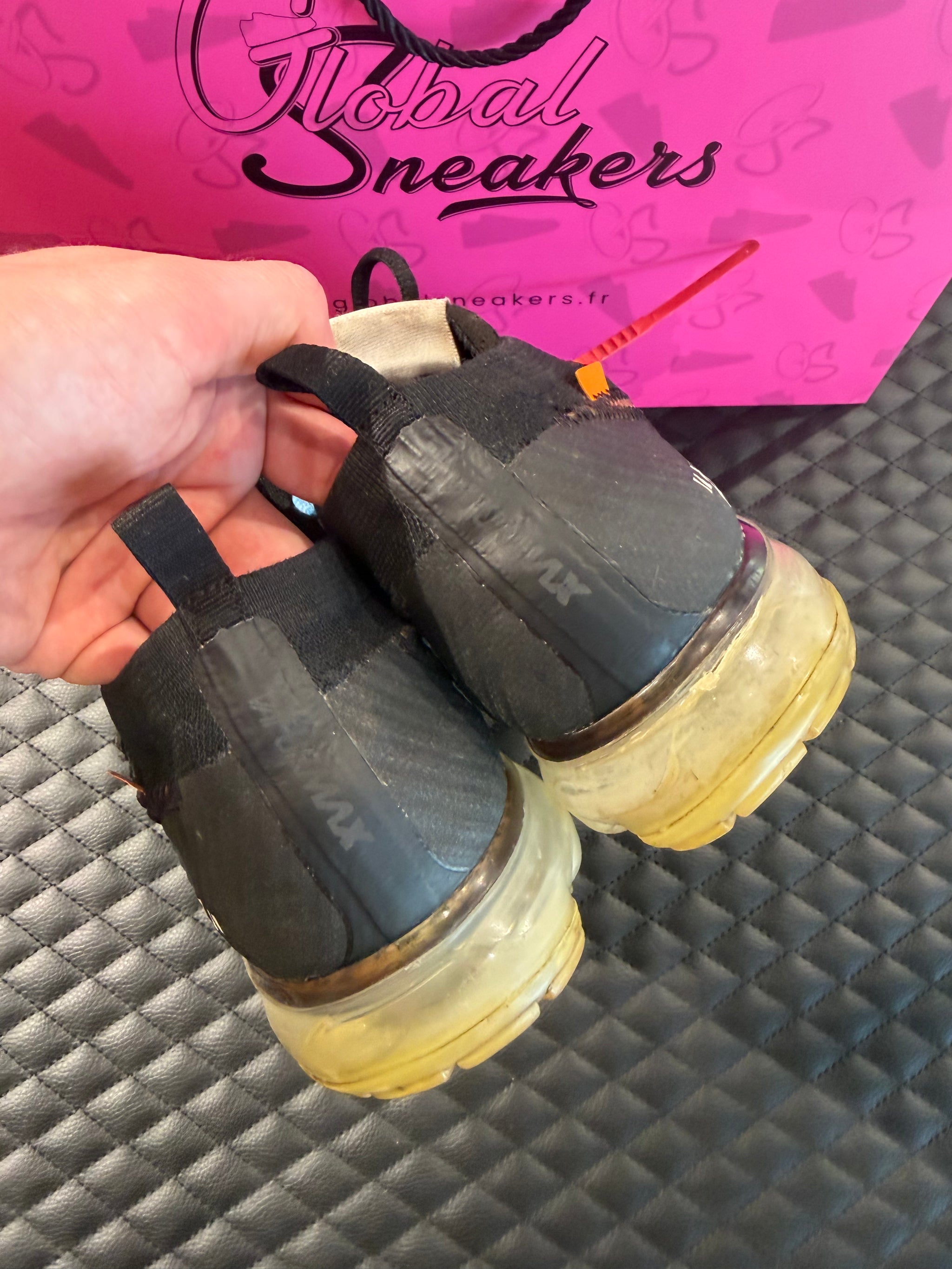 La Nike Air VaporMax Off-White Black est une sneaker d’exception qui réunit l’esprit avant-gardiste d’Off-White et l’innovation technologique de Nike Air VaporMax, ici proposée en édition d’occasion pour les amateurs de pièces rares et iconiques. Arborant un coloris Black profond structuré par des détails typiques de Virgil Abloh, cette silhouette captive par son esthétique monochrome sophistiquée, où la subtilité rencontre une attitude résolument contemporaine. Véritable fusion entre design conceptuel et performance athlétique, elle s’impose comme une pièce phare du vestiaire premium.