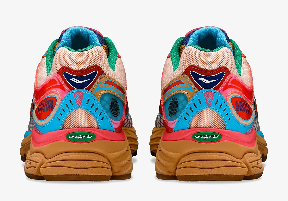 La Saucony ProGrid Omni 9 Jae Tips “To Do List Tan” incarne l’univers coloré, poétique et introspectif de l’artiste new-yorkais Jae Tips, déjà reconnu pour ses collaborations audacieuses. Inspirée de sa philosophie de vie et de sa créativité quotidienne, cette version affiche une tige en mesh beige sable “Tan” relevée par des superpositions en daim premium multicolores — rose, violet, turquoise et orange — traduisant la spontanéité et la joie créative de l’artiste. Des messages positifs et symboliques ornent la languette et le talon, dont la mention “To Do List” brodée, rappelant l’idée de réaliser ses rêves chaque jour.