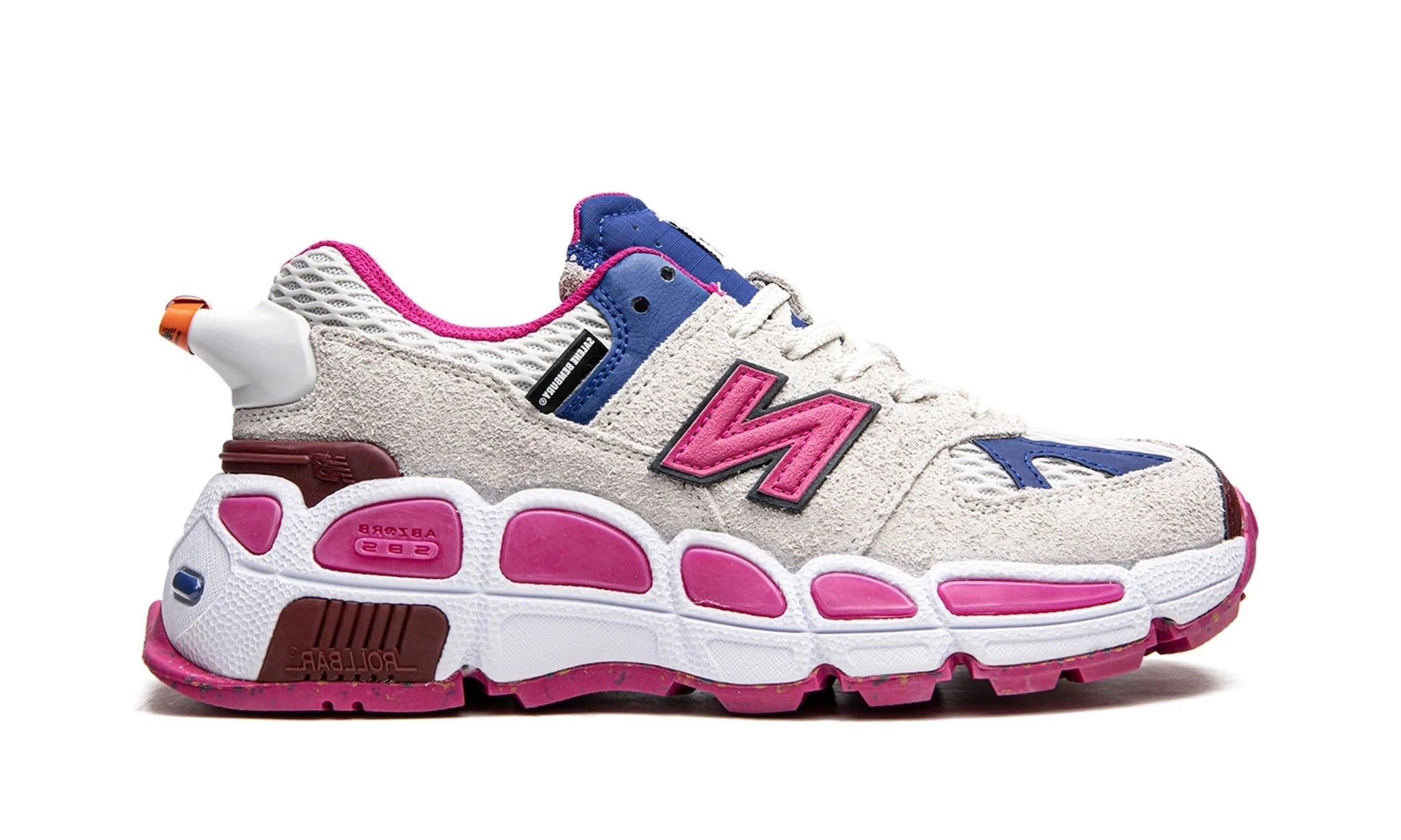 La Salehe Bembury x New Balance 574 Yurt "Pink" est une collaboration de l'héritage NB avec Salehe Bembury qui met en valeur son amour et son appréciation pour le plein air. Cette basket durable est dotée d'une semelle intermédiaire qui lui permet de devenir une chaussure de trail tout en conservant la signature esthétique de New Balance. L'empeigne en daim et en mesh, entièrement blanche, est rehaussée de rose, de bleu et de bordeaux. Pour ajouter au caractère unique du modèle et à l'ambiance trail-hiking, un sifflet de secours est attaché à la chaussure au niveau du talon.