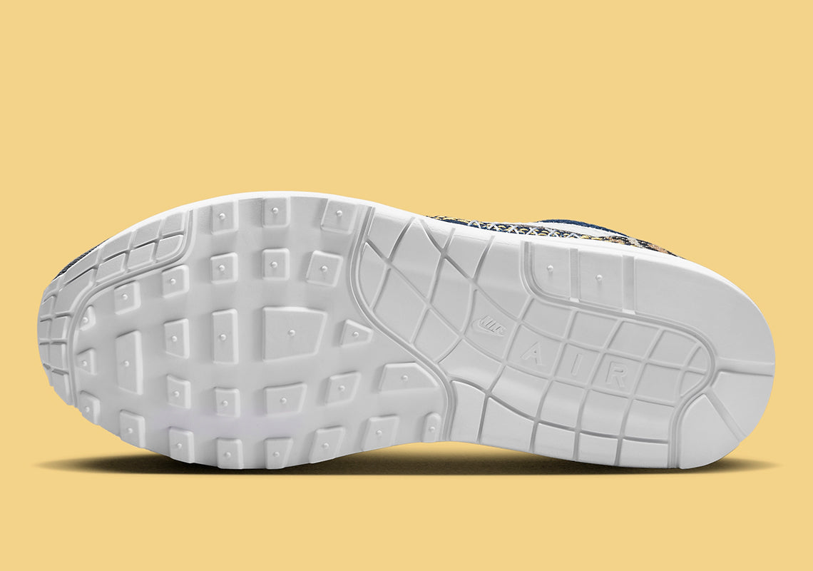 Recently, the inaugural silhouette that introduced the world to the visible Air Max was filled to the brim with an onslaught of disparate materials and textiles. The dark navy denim that covers the top of the foot and the full-length mudguard of the shoe, the white cross stitching and the pastel yellow threads provide artisanal touches.