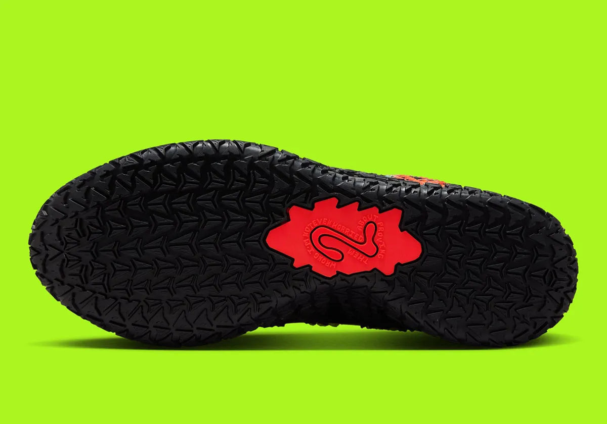 Taking a clean, dark approach, the Zoom-assisted silhouette echoes the smoky, charred environment of an indoor fireplace. Jet black tones take up almost the entire mesh upper, save for the mismatched yellow and gray tongues and insole logos. A cloudy gray marbling takes over the TPU profiles, livening up the dark environment while Ja's phrase is written in his hand on the lateral side of the almost white heel counter.