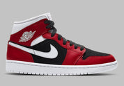 La Air Jordan 1 Mid "Gym Red/Black" est la première chaussure signée Michael Jordan dans un coloris centré sur les Chicago Bulls et conçu pour les femmes. Sortie en 2020, la Jordan 1 Mid "Gym Red/Black" poursuit l'association du modèle avec l'ancien club de base-ball "The GOAT" en reprenant les couleurs de l'uniforme de l'équipe dans son design. Les superpositions de cuir Gym Red sont visibles sur l'avant-pied, l'embout, les oeillets, le col et le talon.