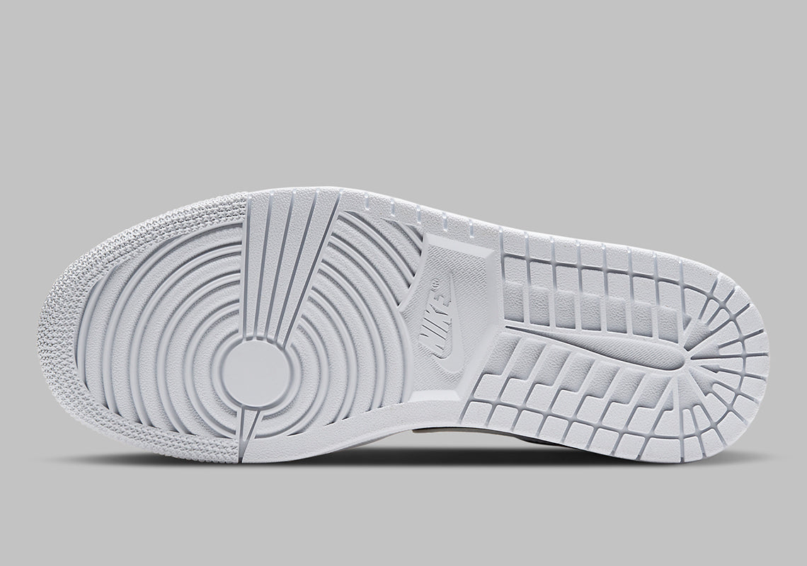 Un feutre noir se trouve sur l'orteil et le milieu du pied perforés. Le marquage classique se présente sous la forme d'un Swoosh en cuir blanc sur chaque côté et d'un emblème "Wings" en cuir blanc sur le col. Un graphique Jumpman rouge apparaît sur l'étiquette de la langue en nylon blanc qui est cousue sur la langue en nylon blanc.